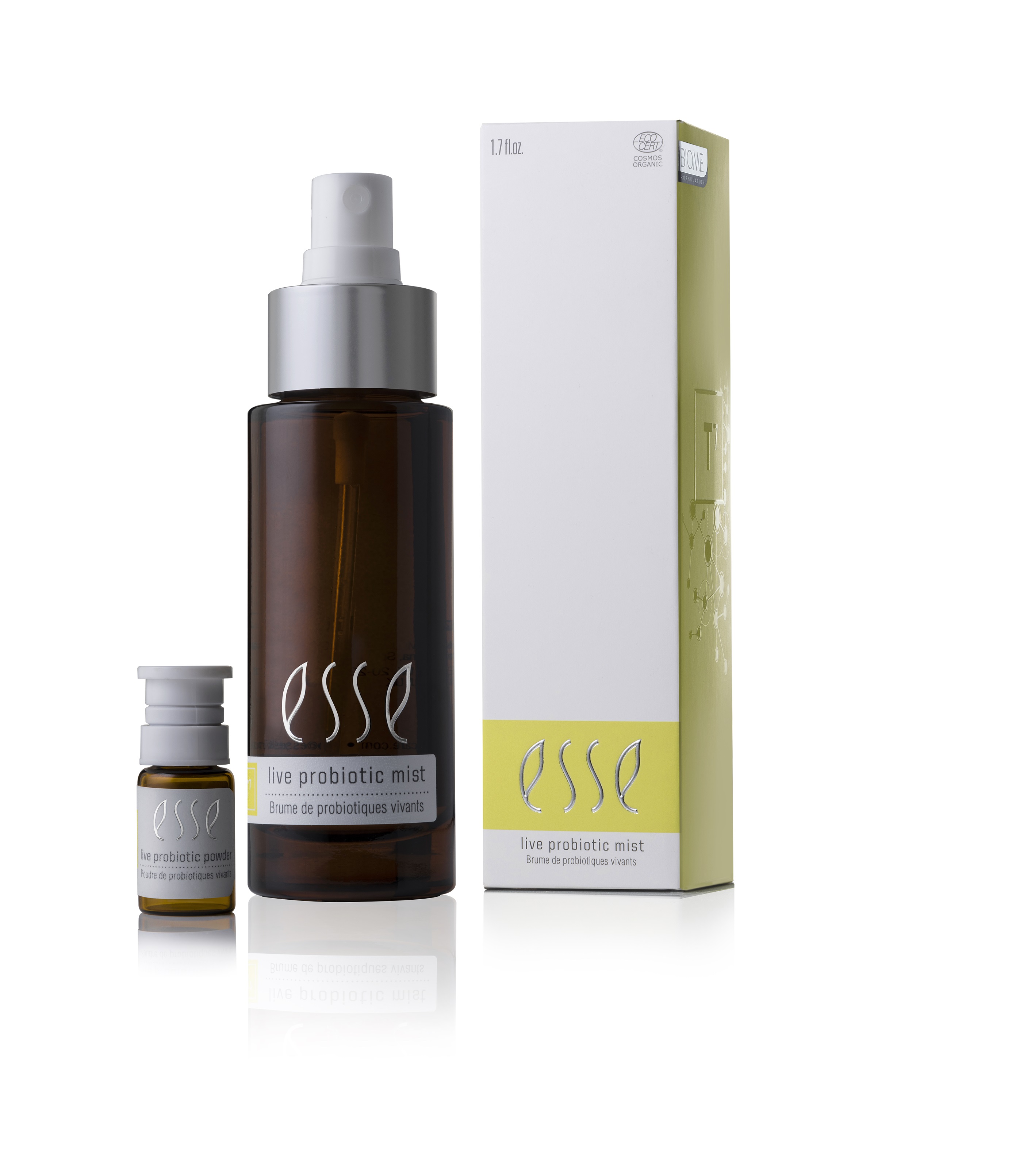 De levende Bacillus coagulans wordt in poedervorm, voorafgaand aan het eerste gebruik, toegevoegd aan de vloeistof in de flacon. Deze specifieke bacteriestam verbetert niet alleen het vochtgehalte van de huid, maar ondersteunt tevens de barrièrefunctie en de balans van het microbioom. Ook is het een perfecte voorbereiding op de verzorgingsproducten die na de mist worden gebruikt. Dit is het eerste product op waterbasis met levende probiotica dat oprichter en pionier in probiotische huidverzorging Trevor Steyn voor Esse heeft ontwikkeld.